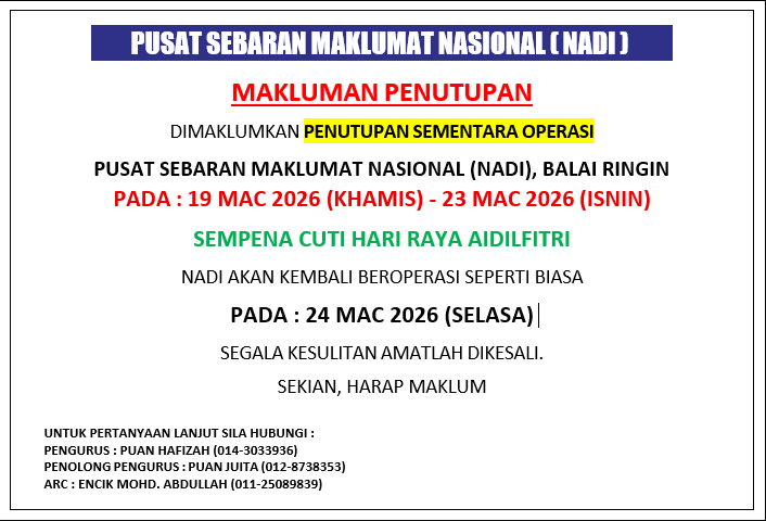 NOTIS PENUTUPAN SEMENTARA SEMPENA HARI RAYA AIDILFITRI 2026
