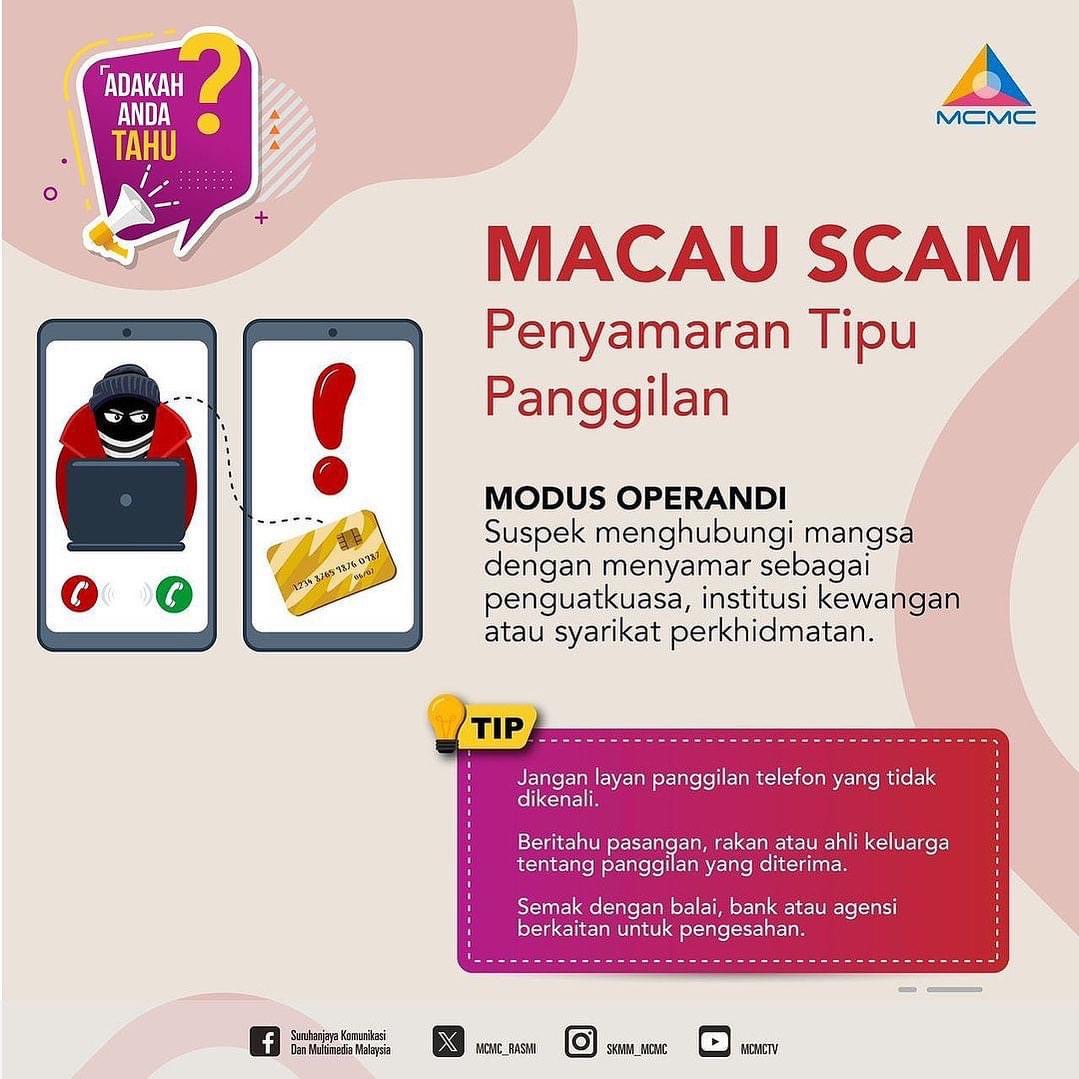 Berhati-hati jika anda menerima panggilan yang tidak dikenali. Jika panggilan tersebut mencurigakan dan meminta butiran sensitif, segera tamatkan panggilan. Hubungi Pusat Respons Scam Kebangsaan di talian 997 segera sekiranya anda menjadi mangsa scam agar tindakan dapat diambil oleh pihak berkuasa. […]